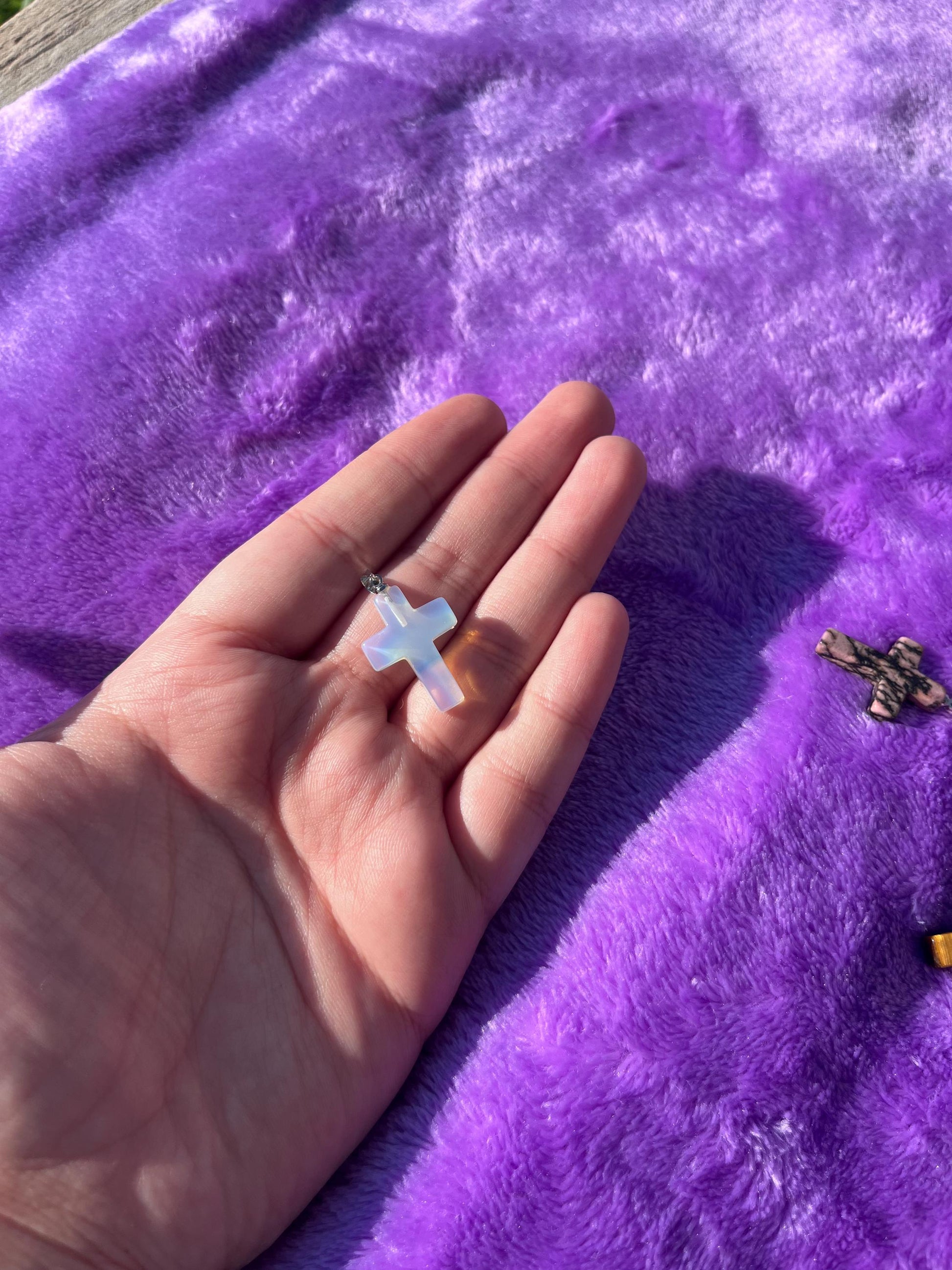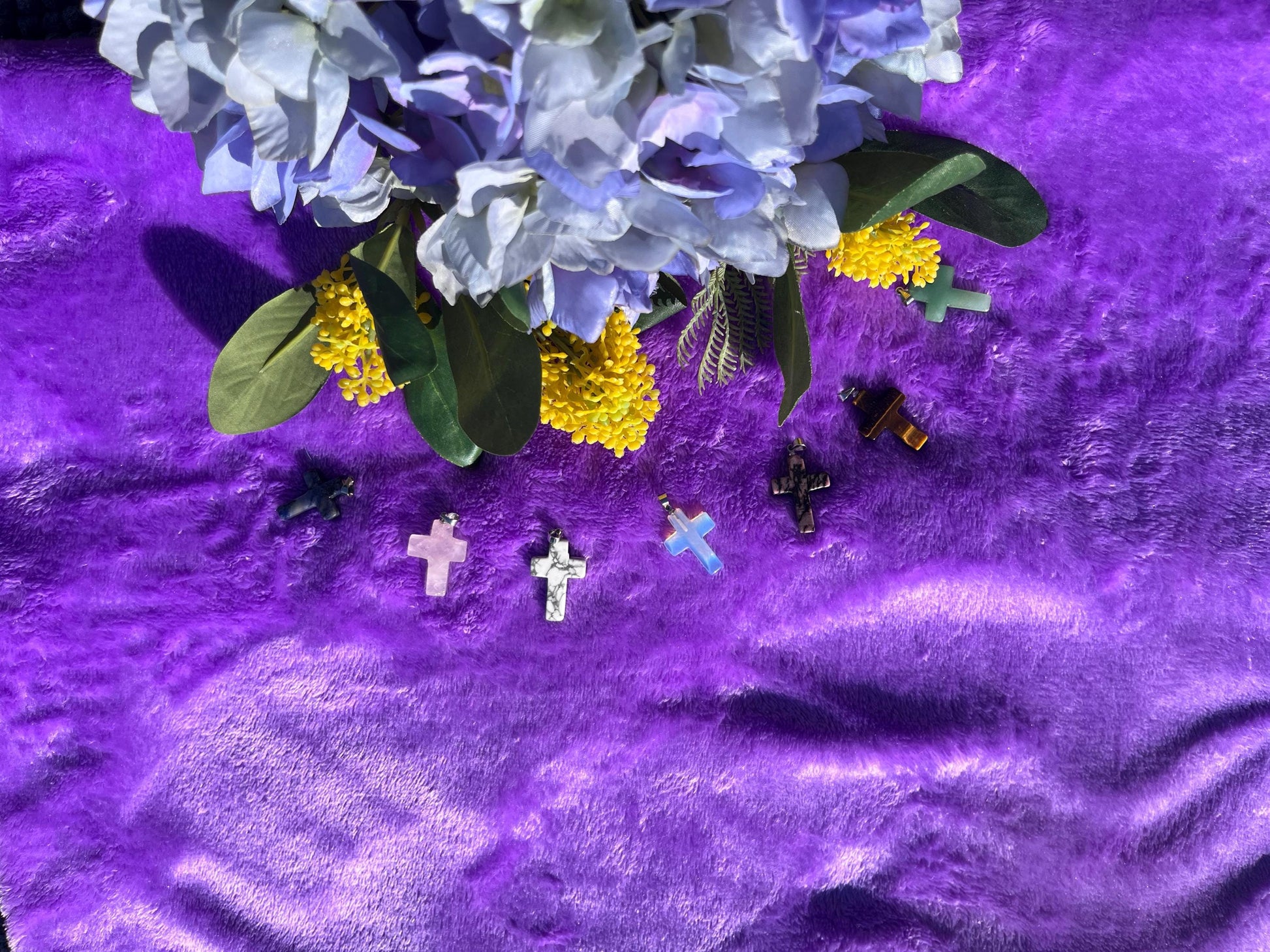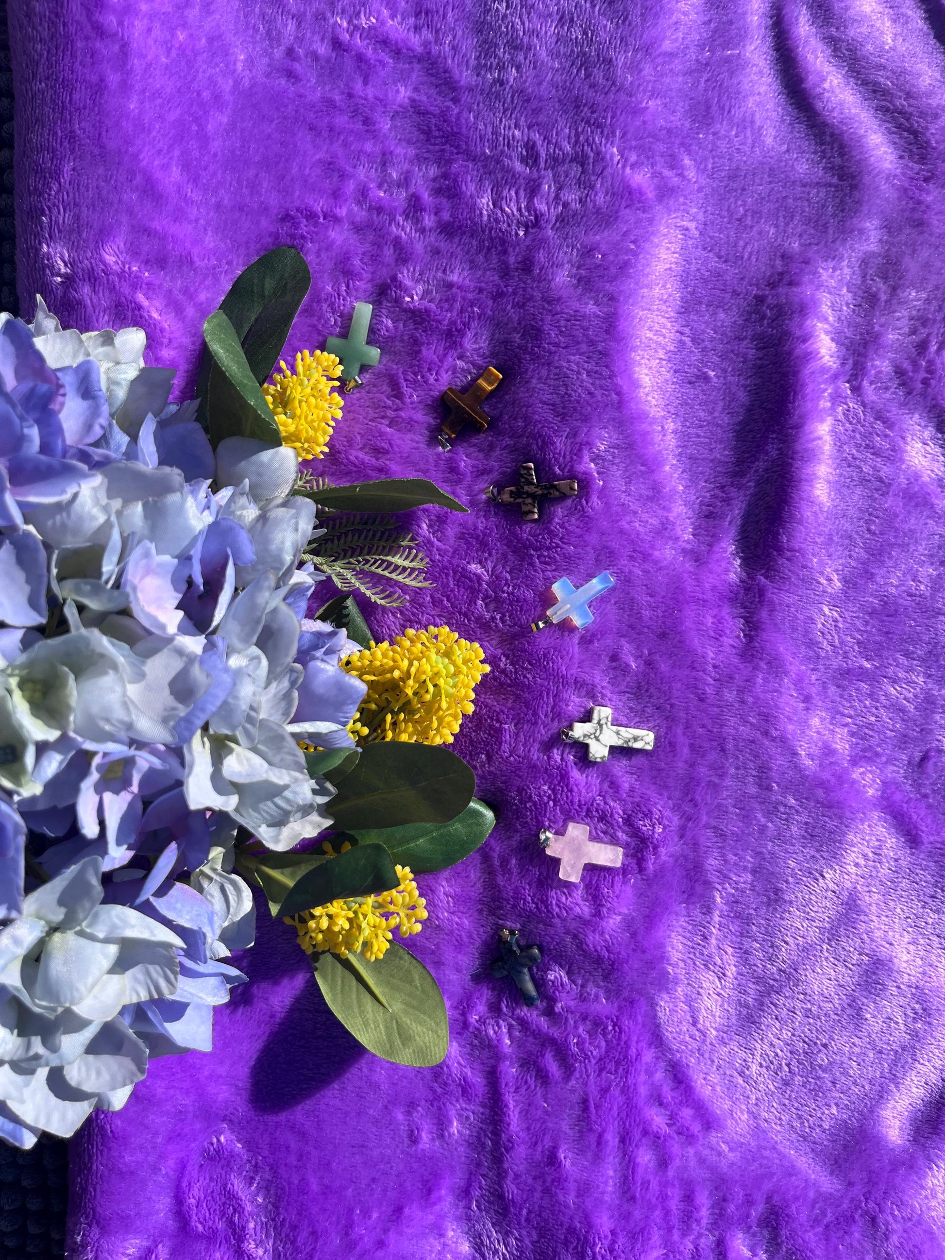 Elevate your spiritual style with our breathtaking gemstone cross pendants where divine beauty meets timeless elegance. From the serene clarity of quartz, to the rich balance of our blue sodalite, to the lush green of aventurine, to the pebbled perfection of rhodonite. Our pendants offer a personalized touch of grace and significance, Expertly designed and set in high-quality materials. These pendants not only enhance your faith, but also make a stunning accessory for any occasion. Adorn one of our beautiful pendants to a chain and find an inner strength that can carry you throughout your day.